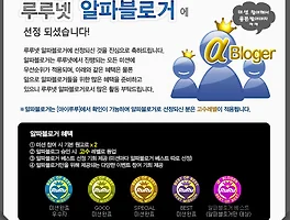 | [자축] 미션월드 루루넷 알파블로거로 선정되었습니다! (0) | 2010.06.11 |